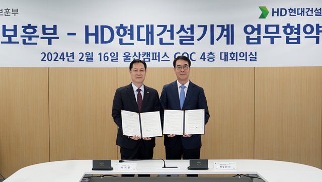 HD현대건설기계는 16일 울산 신사옥 글로벌오퍼레이션센터에서 국가보훈부와 ‘국가유공자 하우스 리모델링 사업’에 관한 업무협약(MOU)을 체결했다고 밝혔다. 체결식에는 최철곤 HD현대건설기계 사장과 이희완 국가보훈부 차관 등이 참석했다.
