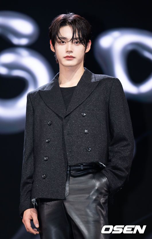 [OSEN=김성락 기자] 6일 오후 서울 광진구 예스24 라이브홀에서 그룹 제로베이스원(ZEROBASEONE)의 미니 2집 앨범 ’MELTING POINT’ 발매 기념 쇼케이스가 열렸다. 제로베이스원 김지웅이 포토타임을 갖고 있다. 2023.11.06 /ksl0919@osen.co.kr