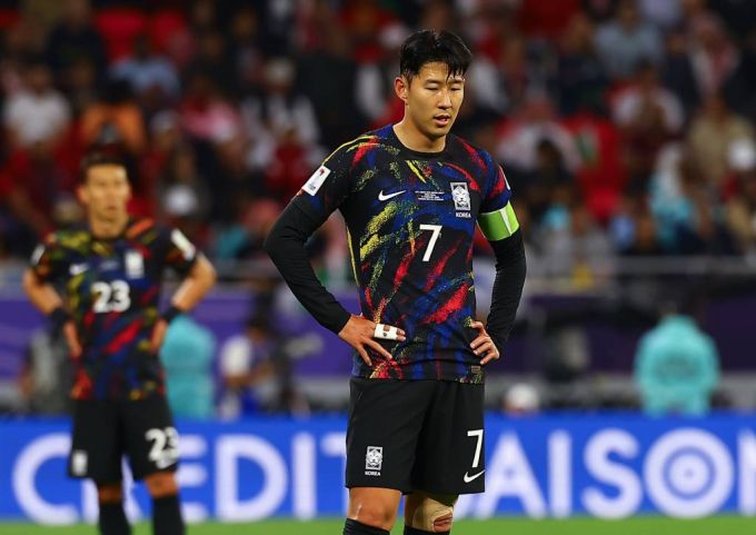 사진은 지난 7일(한국시간) 카타르 알라이얀 아흐마드 빈 알리 스타디움 열린 2023 아시아축구연맹(AFC) 아시안컵 요르단과의 준결승전 당시 손가락에 붕대를 감은 손흥민. /사진=뉴시스 |