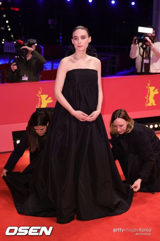 배우 루니 마라(Rooney Mara)는 최근 베를린 국제 영화제 기간 동안 진행된 영화 '라 코시나(La Cocina)' 프리미어에서 검은 드레스를 입고 레드카펫을 밟으며 D라인을 당당히 공개했다. 그녀는 약혼자 호아킨 피닉스와의 사이에서 둘째 아이를 임신하고 있다고 밝혔다.