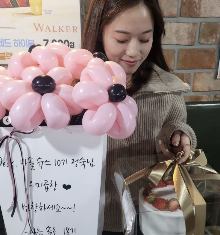 이에 18기 영숙은 '정숙언니 숙(속) 시원하게 용서해주세요'라는 문구가 적힌 케이크를 들고 10기 정숙을 찾아가 직접 사과했다. '나솔 슈스 10기 정숙님 번창하세요 -나는 솔로 19기'라고 적힌 풍선 문구도 시선을 사로잡는다.