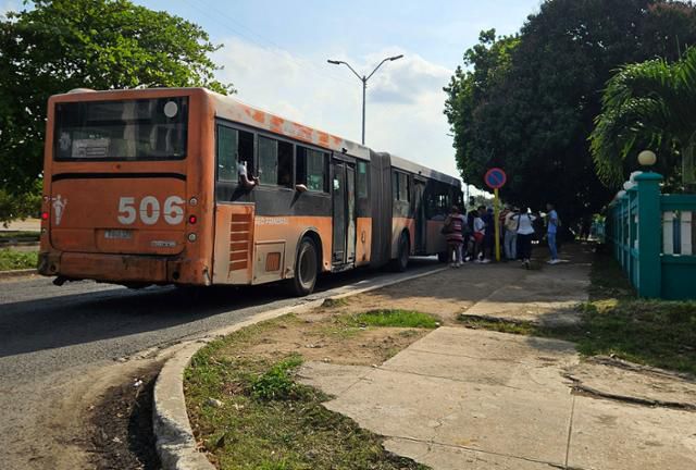 15일(현지시간) 쿠바 아바나 도심에서 주민들이 버스에 오르내리고 있다. 아바나=연합뉴스