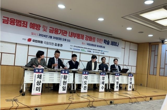 [디지털데일리 박기록기자] 한국자금세탁방지학회와 대한변협 금융변호사회 등이 공동 주관하고, 국민의힘 김용판 의원실이 주최한 '금융범죄 예방 및 금융기관 내부통제 강화를 위한 학술세미나'가 20일 국회의원회관에서 개최했다.