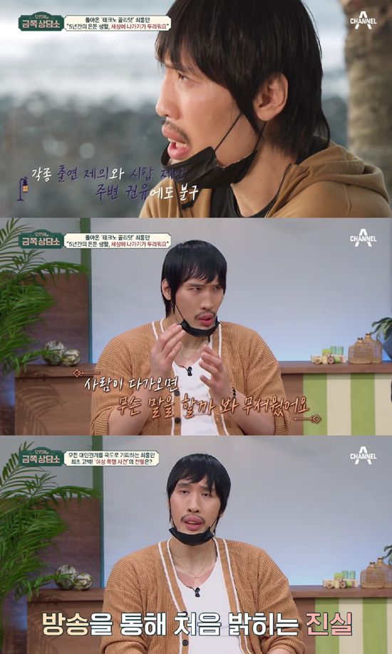 지난 20일 최홍만이 5년 만에 방송에 모습을 나타냈다. 사람들을 피해 제주도에서 은둔 생활 중인 최홍만은 약 1년간의 긴 고민 끝에 채널A '오은영의 금쪽 상담소'에 출연을 결심했다.