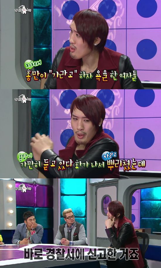 이날 그는 여성 폭행 루머를 직접 언급하기도 했다. 당시 남녀가 합석하는 테마의 주점을 운영했던 최홍만은 "합석한 남자 애들이 돈을 안 내고 도망을 갔다. 여자분들이 화가 나서 술을 막 먹고 취했다. 저한테 와서 '뭐 해달라'고 옷을 잡아당기더라. 저는 뿌리쳤는데 그걸 경찰에 신고한 것"이라고 설명했다.