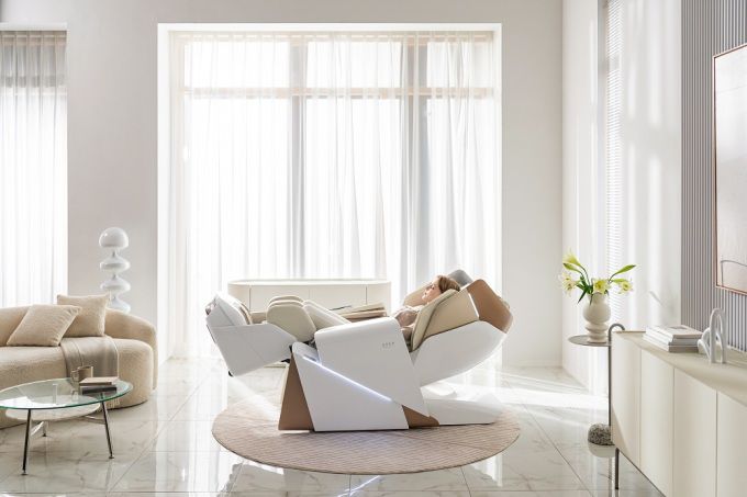 로보틱스 테크놀로지 기능을 돋보이게 하는 '에덴'의 제품 디자인도 눈길을 끈다. 누운 자세와 앉은 자세를 자유롭게 오가며 마사지하는 기술을 시각화해 SF 영화 속 우주선 출입문 개폐가 연상되는 사이드 패널을 디자인했다. 사각 사이드 패널이 사선으로 분리되면서 빛나는 LED 라이트는 팔 마사지부가 슬라이딩되는 로보틱스 테크놀로지 모션을 강조하면서도 미래지향적 감성을 물씬 풍긴다. 전기회로 기판의 섬세한 라인과 패턴에서 영감을 받아 디자인한 시트 부위는 예술적인 분위기마저 느껴진다.