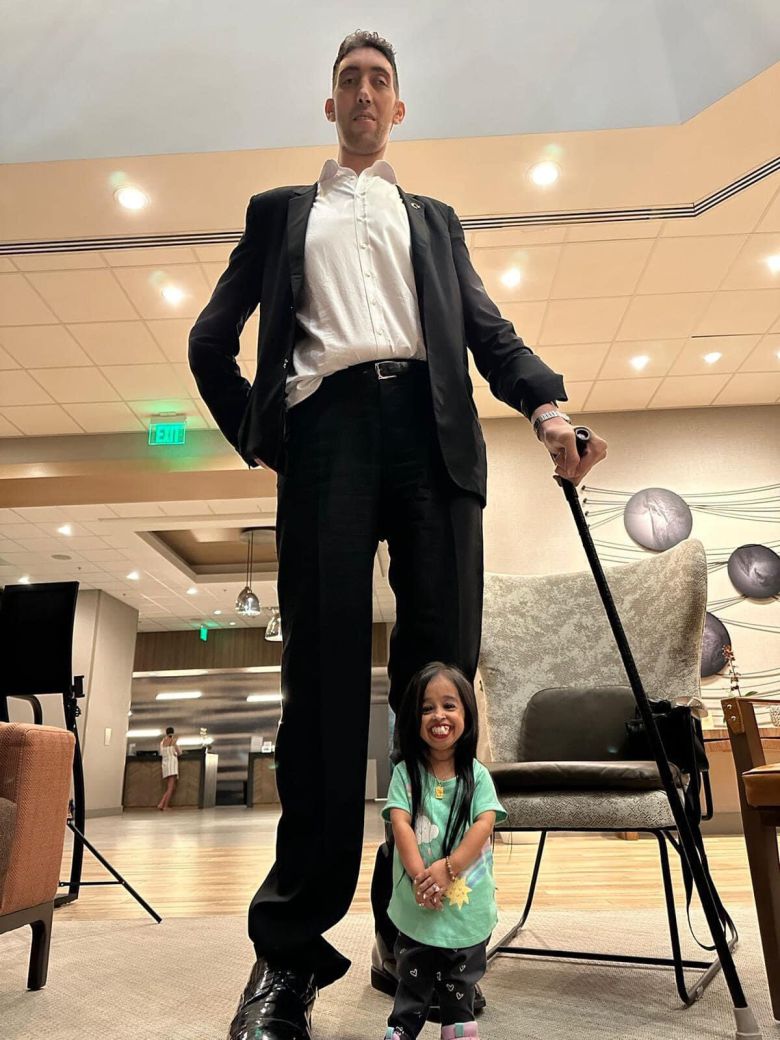 세계에서 가장 키가 큰 남성인 술탄 쾨센과 세계에서 키가 가장 작은 여성인 조티 암지. <출처=조티 암지 엑스(x·구 트위터) 갈무리> |