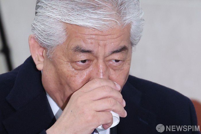 [서울=뉴스핌] 이형석 기자 = 이상헌 더불어민주당 의원이 22일 오후 서울 여의도 국회 소통관에서 울산 북구 후보 무공펀 관련 기자회견을 앞두고 물을 마시고 있다. 2024.02.22 leehs@newspim.com