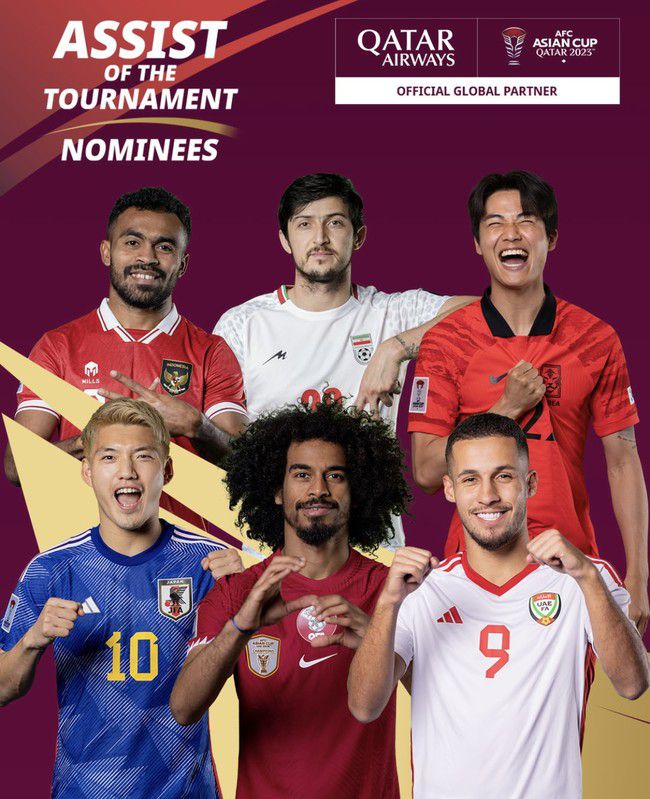 한편 AFC 베스트 어시스트 부문에는 설영우와 함께 인도네시아의 야콥 사유리(vs이라크), UAE의 알리 살레(vs팔레스타인), 카타르의 아크람 아피프(vs중국), 일본의 도안 리츠(vs인도네시아) 그리고 사르다르 아즈문(vs일본)의 어시스트가 후보에 올랐다.