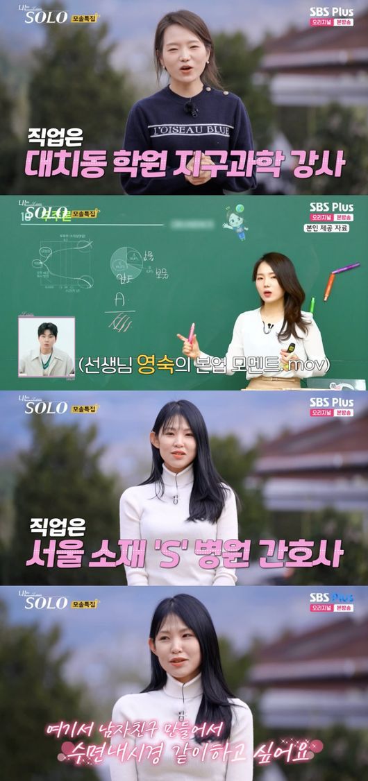 이날 영숙은 대치동 학원에서 지구과학 강사로 일하고 있다고 소개했다. 대체로 학년은 고3, 재수생을 가르치고 있다고. 그러면서 주말 부부가 꿈이라고 덧붙였다.