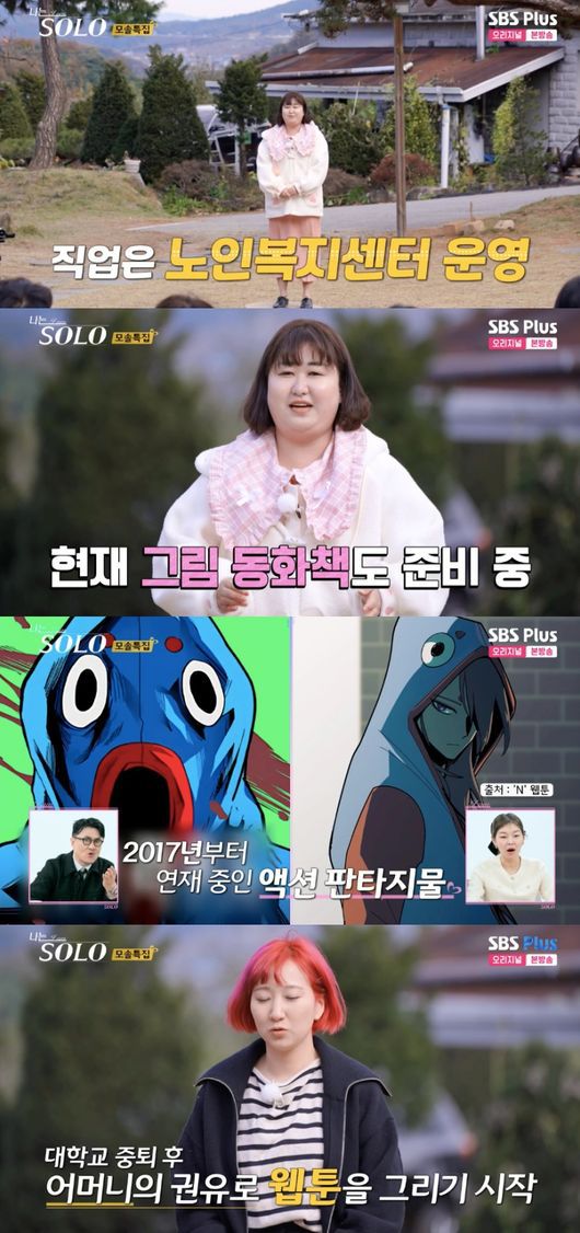영자는 “대학교에서 공예과 전공을 했는데 너무 안 맞아서 학사경고를 받았다. 저희 어머니께서 초등학교 때 만화 잘 그렸는데 만화 어떠냐고 해서 웹툰에 뛰어들었다”라며 웹툰을 그리게 된 계기를 설명했다. 그러면서 2017년부터 무려 7년째 액션 판타지 웹툰을 연재하고 있다는 영자는 “운이 좋게도 데뷔를 할 수 있게 되서 현재 7년째 하나의 웹툰을 그리고 있다. 완결 이후에 제 인생을 생각해본 적 없다. 후회하기 전에 ‘나는 솔로’에 나오고 싶었다”라고 출연 이유를 밝혔다.