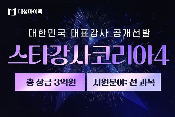 [스타데일리뉴스=황규준 기자] 대성마이맥이 강사 선발 대회 '스타강사코리아4'의 개막 소식을 알렸다.