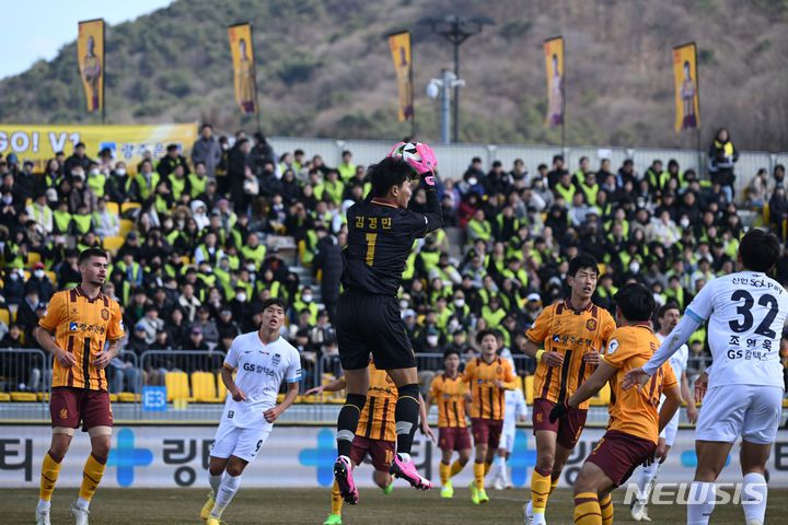 [광주=뉴시스] 이영주 기자 = 2일 오후 광주 서구 광주축구전용구장에서 열린 하나원큐 K리그1 2024 1라운드 광주FC와 서울FC의 경기, 광주FC 김경민이 공을 잡고 있다. 2024.03.02. leeyj2578@newsis.com