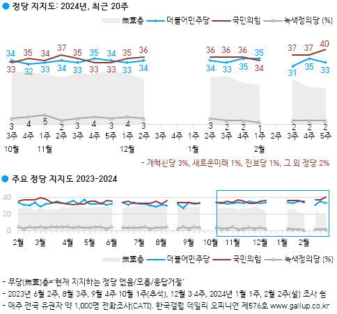 민심은 여론조사 수치로도 나타납니다. 3월1일 발표한 한국갤럽 정례조사에서 정당 지지도는 국민의힘 40%, 민주당 33%였습니다.(중앙선거여론조사심의위원회 누리집 참고) 지난해 10월 이후 가장 많이 벌어졌습니다.