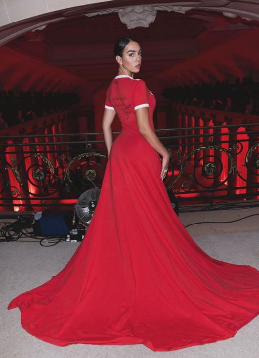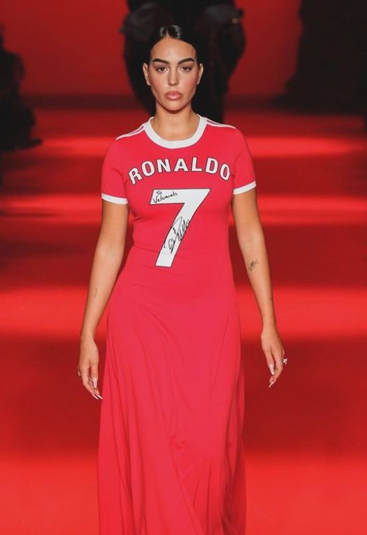 호날두의 여자친구 조지나 로드리게스(30)는 파리패션위크에 참석해 모델로 변신했다. 호날두의 맨유시절 유니폼을 오마주한 드레스를 입은 조지나는 모델로 변신해서 런웨이에서 캣워크를 했다.