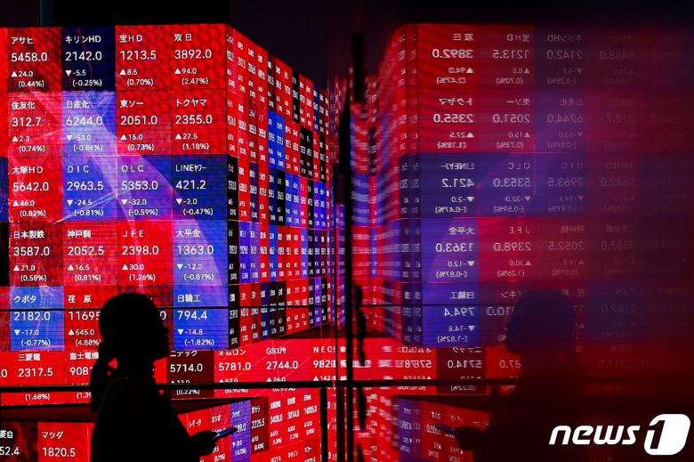 한 방문객이 일본 니케이 증시 시세 전광판 앞을 지나고 있다. 이날 일본 증시 대표 주가지수인 니케이225 평균주가(니케이지수)는 34년만에 장중 사상 최고치를 갈아치웠다. 2024.02.22. ⓒ 로이터=뉴스1 ⓒ News1 정윤영 기자 |