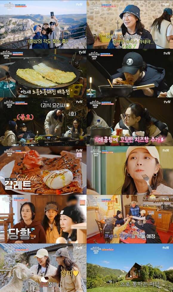 3일 방송된 tvN 예능프로그램 '텐트 밖은 유럽 - 남프랑스 편'(이하 '텐트밖은유럽') 3회에는 베르동 협곡을 거쳐 남프랑스의 찐 시골을 체험하는 이야기가 담겼다. 멤버들은 따뜻한 커피로 추위를 녹인 가운데 한가인은 "20년 전 마셔본 커피가 마지막"이라고 말했다.
