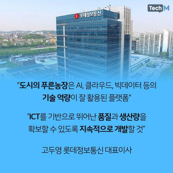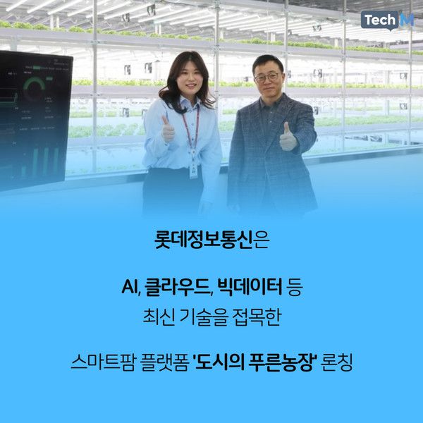 롯데정보통신은 스마트팜 플랫폼 '도시의 푸른농장'을 론칭했다고 27일 밝혔다. '도시의 푸른농장'은 누구나 쉽게 작물을 재배할 수 있는 스마트팜 플랫폼으로, 농장의 설계, 구축, 운영 및 판매에 이르는 전 과정을 지원한다.