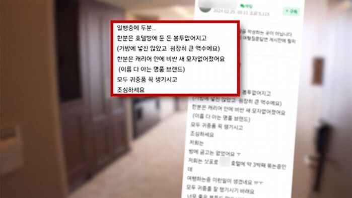 또 다른 한 사람은 여행 가방 안에 든 명품 모자가 사라졌다는데요.
