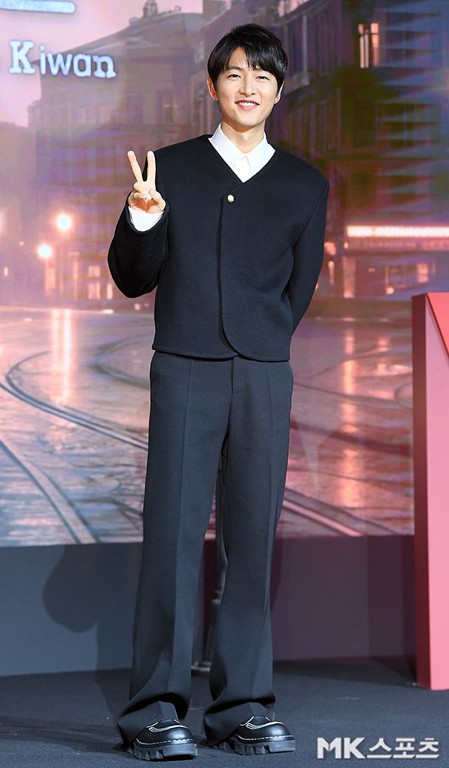 ‘로기완’ 제작발표회에서 송중기가 포즈를 취하고 있다. 사진=MK스포츠 |