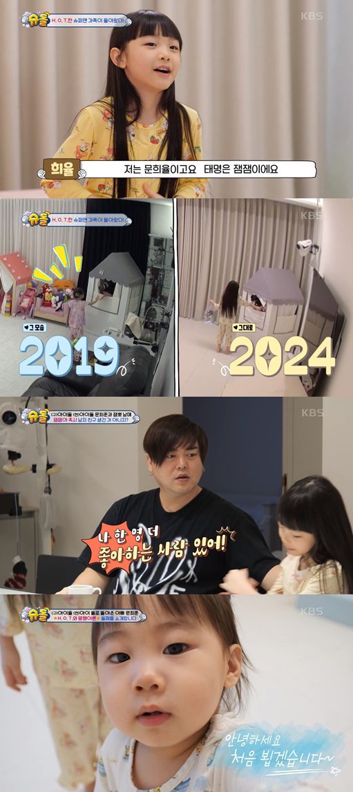 지난 5일 방송된 KBS2 '슈퍼맨이 돌아왔다'(이하 '슈돌')에서는 문희준의 딸 희율의 근황이 공개됐다. 2019년 랜선 이모, 삼촌들의 마음을 뒤흔들었던 잼잼이가 '슈돌'에 컴백한 것.