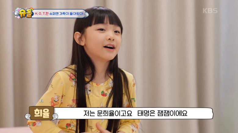 희율은 "저는 문희율이고 태명은 잼잼이에요. 저는 여덟 살이고 만 나이로는 일곱 살이에요"라고 소개하며 "슈돌에 돌아오게되어 엄청 엄청 많이, 더 많이, 이만큼 좋아요"라고 말했다.