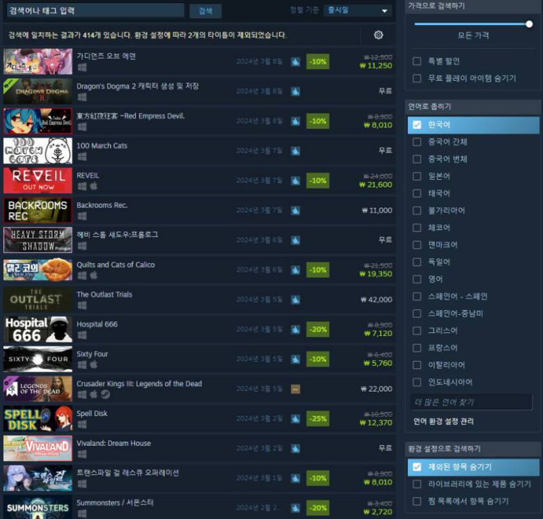 하지만, 요즘은 국내 유통사도 없이 글로벌 출시된 게임들도 한글 자막을 지원하는 경우가 대폭 늘다보니, 그동안 잘 알려지지 않았던 해외 개발사 게임이 출시되자마자 국내 스팀 판매량에서도 높은 순위를 기록하는 경우가 늘어나고 있다.