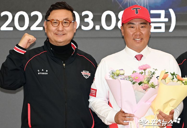 최 대표는 "빚고을 호랑이들의 위용 있는 모습을 보여줘야 할 때다. 야구명가 재건이라는 사명을 갖고 새롭게 모신 이범호 감독님부터 코칭스태프, 선수단, 프런트 모두가 힘을 모아야 한다"며 "이범호 감독님이 선임된 후 다소 경험이 부족하지 않냐는 우려의 시선도 있었다. 하지만 이범호 감독님만큼 우리 팀에 대해 잘 알고 있고, 선수들과의 소통 능력이 뛰어난 지도자는 없다고 생각해 타이거즈 감독이라는 중책을 맡기게 됐다. 감독으로서 뛰어난 역량을 발휘할 것을 믿어 의심치 않는다"고 말했다.