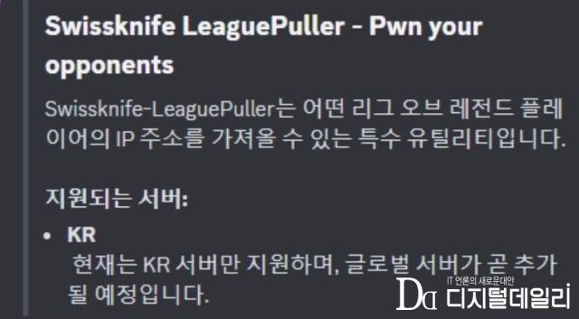 실제, 스위스나이프 측은 리그 풀러 프로그램 소개란에 “현재는 KR(한국) 서버만 지원하지만, 글로벌 서버를 곧 추가할 예정”이라고 밝힌 바 있다.