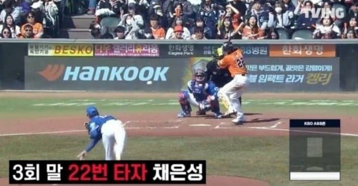 한화 이글스 채은성을 ‘22번 타자’로 표기한 티빙 야구 중계/ 티빙 |