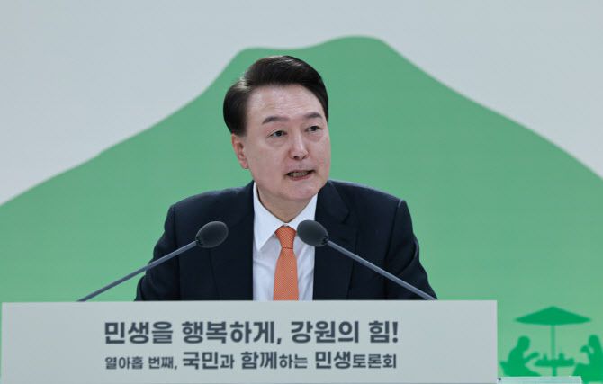 윤 대통령은 이날 오전 강원특별자치도 춘천 강원도청 별관에서 ‘민생을 행복하게, 강원의 힘!’을 주제로 열린 민생토론회에 참석해 “강원도민의 삶의 어려움과 불편함을 해결해서 도민의 행복을 키우겠다”고 이 같이 말했다.