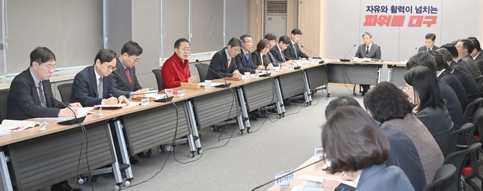 홍준표 대구시장(왼쪽 네번째)과 대구시 간부들이 11일 회의를 하고 있다. 대구시 제공 |