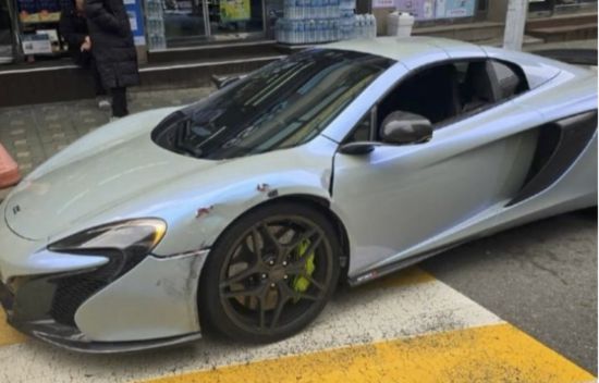 사고 이후 맥라렌 차량 [사진출처=온라인 커뮤니티 '보배드림'] |