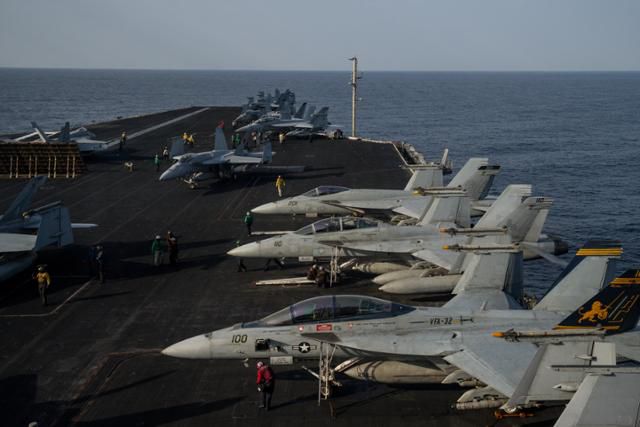 미국 해군 항공모함 아이젠하워호가 지난달 12일 홍해 인근에 급파돼 경계 작전을 수행하고 있다. AP 연합뉴스 |