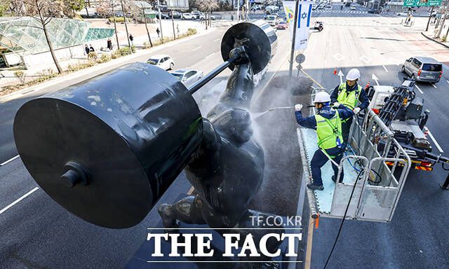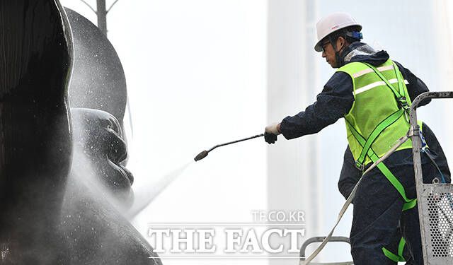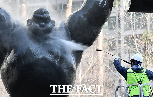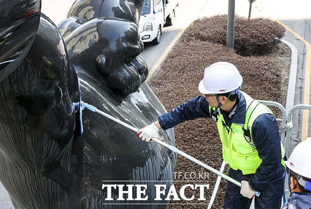 특히 자동차 매연과 먼지, 새 분비물 등으로 심하게 더럽혀진 조형물은 드라이아이스를 이용해 세척했다.