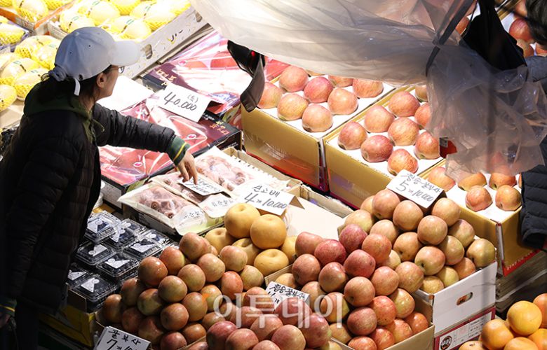 13일 경기 부천 삼산농산물 도매시장에서 시민이 과일을 구입하고 있다. 고이란 기자 photoeran@ |