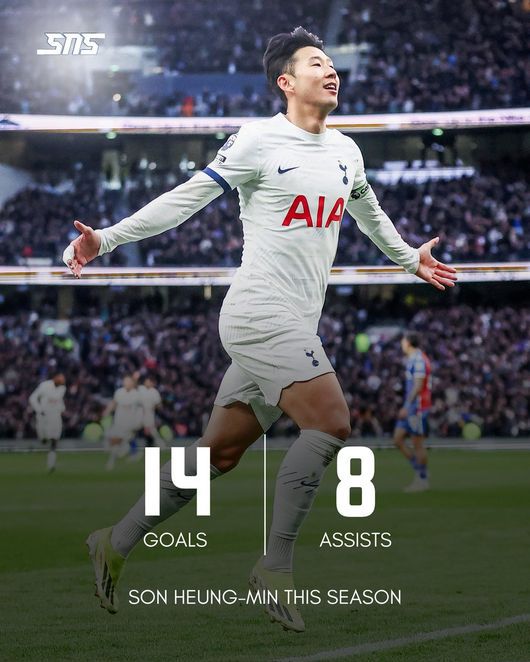 또한 손흥민은 팀 내 득점 1위에 이어 도움 1위에도 이름을 올렸다. 그는 계속해서 팀 내 최다 득점을 기록 중이었던 가운데 도움까지 두 개 추가하면서 제임스 매디슨, 페드로 포로(이상 7개)를 제치고 도움 1위까지 석권했다. 주장이자 에이스인 손흥민이 토트넘에서 얼마나 큰 비중을 차지하는지 알 수 있는 진기록이다.