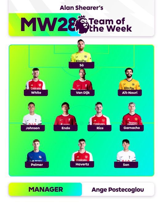 전문가들도 나란히 손흥민을 이주의 팀에 포함했다. PL 최다 득점자에 빛나는 전설 앨런 시어러는 손흥민-카이 하베르츠(아스날)-콜 파머(첼시) 스리톱을 선정하면서 "빌라는 손흥민을 감당할 수 없었다. 그는 두 골을 어시스트하고 또 다른 골을 넣으면서 클래스를 보여줬다"라고 박수를 보냈다.