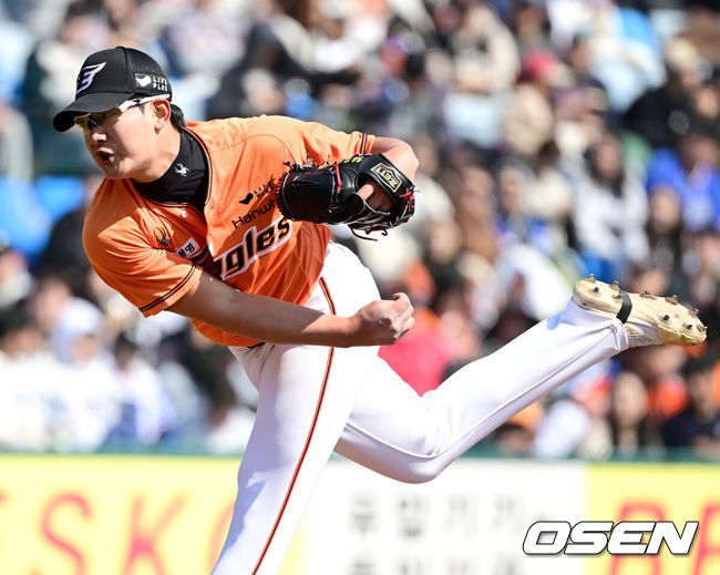 올해 준비 과정은 순조롭다. 정은원, 김민우와 함께 캠프 MVP에 선정될 만큼 좋아졌다. 지난해에는 팔 높이를 높였다 낮추길 반복했지만 마무리캠프 때 박승민 투수코치와 함께 낮춰서 던지는 쪽으로 방향을 잡고 투구 밸런스 유지에 집중하고 있다. 지난해 직구 평균 구속 151.7km로 문동주(151.0km)보다 더 빠른 공을 던진 김서현의 구위는 더 이상 설명이 필요 없다. 불안한 제구를 잡는 데 신경썼고, 그 결과가 시범경기에서 나오고 있다.
