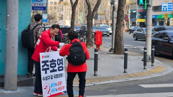 한 택시 기사는 잠시 차를 멈추고 창문을 내린 뒤 주 의원에게 '따봉'을 날렸다. 이에 주 의원은 "감사합니다. 꼭 이기겠습니다"라고 화답했다. 길을 걷던 중년 남성은 주 의원에게 다가와 악수를 청하기도 했다.