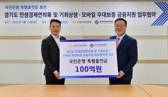 이날 협약에 따라 국민은행은 특별출연금 100억원을 경기신보에 전달하게 된다. 경기신보는 1200억원 규모의 국민은행 특별출연 협약보증 및 300억원 규모의 국민은행 모바일 우대보증을 통해 출연금의 15배수인 총 1500억원의 보증을 지원한다.