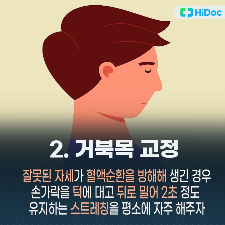 목을 구부리는 자세, 고개를 치켜드는 습관 등 혈액순환을 방해하는 잘못된 생활습관은 이중턱을 유발하고, 악화시킨다. 특히 거북목처럼 목을 구부리는 자세는 목이 앞으로 쭉 빠져 턱 아래 근육이 약해지고 지방이 쌓이기도 쉬워진다. 평소에 스마트폰이나 책을 볼 때 턱을 아래로 숙이지 않도록 해야 한다. 손가락을 턱에 대고 뒤로 밀어 2초 정도 유지하는 스트레칭 동작을 자주 해주는 것도 좋다.