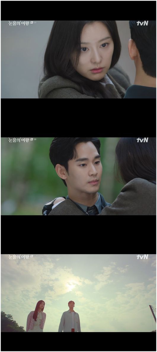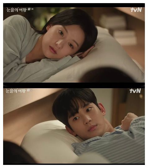 16일 방영한 tvN 새 토일드라마 ‘눈물의 여왕’(극본 박지은/ 연출 장영우, 김희원/ 제작 스튜디오드래곤, 문화창고, 쇼러너스)에서는 시한부 선고를 받은 재벌 상속녀 홍해인(김지원 분)과 그의 남편이자 그와 이혼을 간절히 바랐던 남편 백현우(김수현 분)의 묘한 기류가 그려졌다.