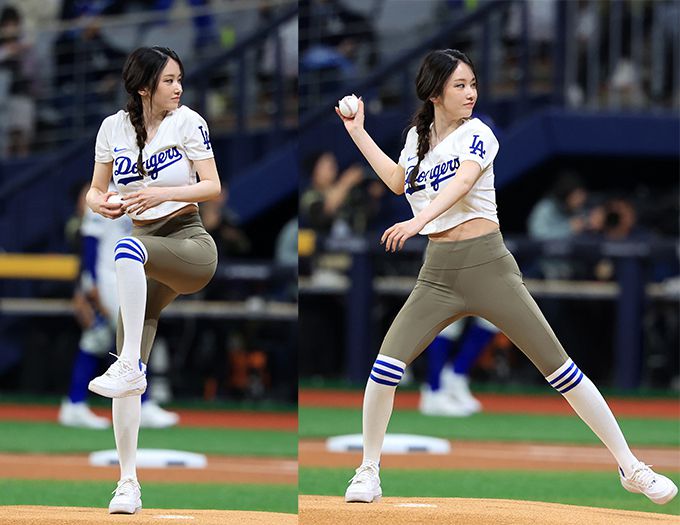이날 시구자로 참석한 전종서는 LA다저스의 아이보리색 반팔 티셔츠를 복부가 드러나도록 크롭 형태로 착용했다. 여기에 그는 몸매가 적나라하게 드러나는 회갈색 레깅스를 입고 LA 다저스 상징 색깔인 하얀 바탕에 파란색 줄무늬가 더해진 니삭스를 신었다.