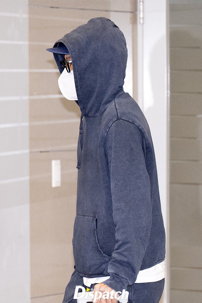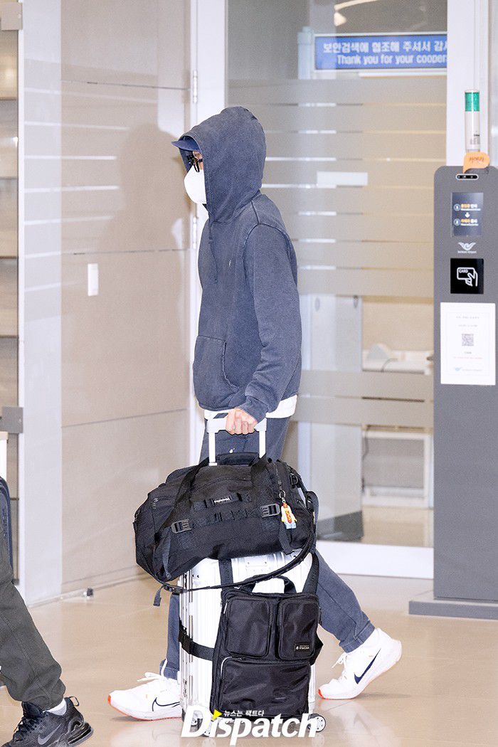류준열은 이날 트레이닝 셋업으로 수수한 공항패션을 연출했다. 마스크와 안경으로 얼굴을 가렸다.