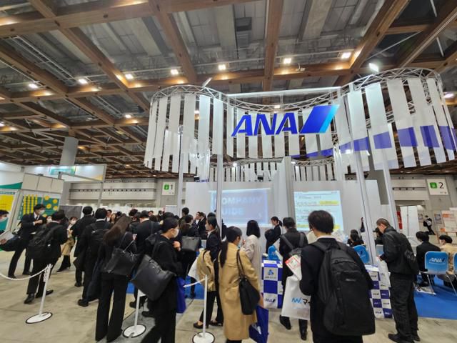 지난 9일 일본 도쿄 최대 국제전시장 빅사이트에서 만난 도쿄 소재 사립대 3학년생 모리야마 나오미(가명·21)는 요즘 취업 활동에 매진하고 있다. 그는 이날 취업 사이트 '마이나비'가 주최한 취업박람회에서 필요한 정보를 구하러 다니고 있었다. 이 취업박람회에서는 일본 3대 메가뱅크(미쓰비시UFJ·미쓰이스미토모·미즈호)를 비롯한 금융업체, 일본 항공사 ANA는 물론 방송사까지, 취업 준비생이라면 누구나 일하기를 꿈꾸는 일본 기업들이 부스를 꾸리고 학생들을 맞았다.