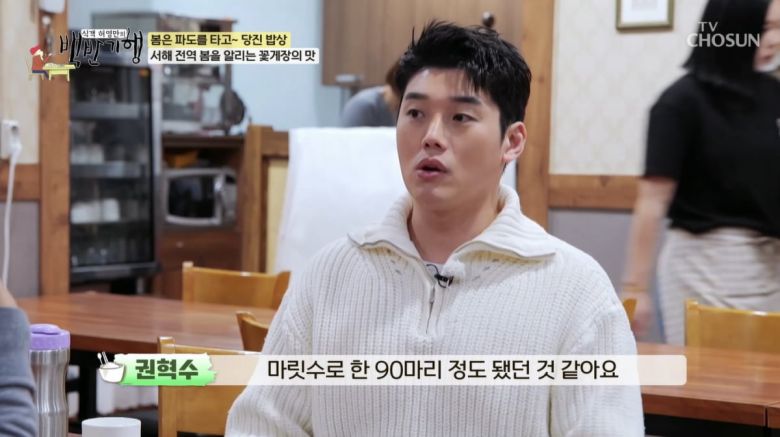 허영만과 권혁수는 꽃게 맛집을 찾았다. 최근 꽃게찜을 먹었다는 권혁수는 "같이 촬영하는 스태프들, 매니저들과 앉아서 7명이 20kg을 쪄먹었다"고 밝혔다. 이어 "마릿수로 90마리 정도 됐던 것 같다"며 대식가 면모를 드러냈다.