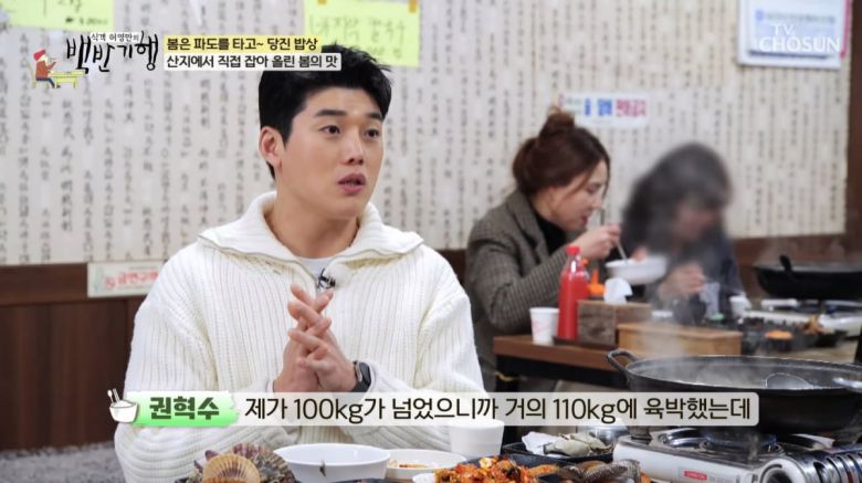 권혁수는 "제가 100kg 넘고 거의 110kg에 육박했다. 보통 살찐 사람들이 예쁘고 잘생겨지면 긁지 않은 복권이라고 하지 않아. 저는 제가 그런 줄 알았는데 꽝 비슷하게 5000원 이런 게 나온 거다"라고 말해 웃음을 자아냈다. 허영만은 권혁수를 유심히 살피다가 "약간 보니 유지태 닮았다"고 말했다. 권혁수는 "그런 얘기를 가끔 들었는데, 유지태 형님은 이 사실을 몰랐으면 좋겠다"며 웃음을 더했다.