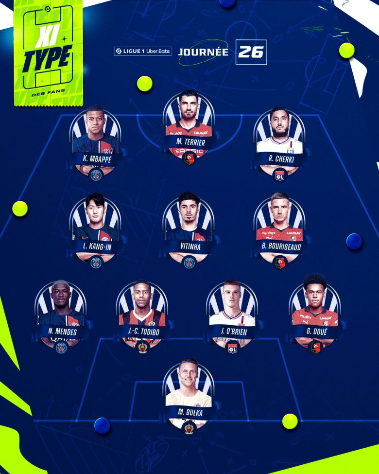 리그1 사무국은 20일(한국시간) 공식 소셜네트워크서비스(SNS)를 통해 "정말 멋진 팀"이라는 문구와 함께 2023-24시즌 리그1 26라운드 베스트 11을 공개했다.