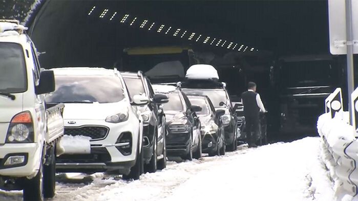 "봄 시샘하나" 춘분에 폭설…도로에 5시간 갇힌 차량들